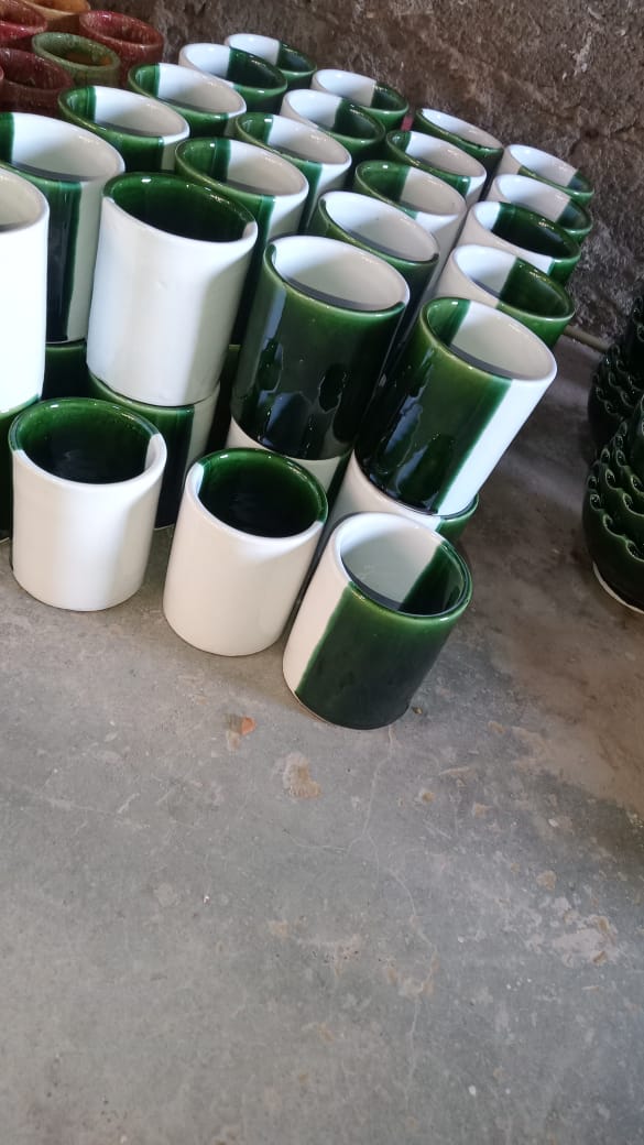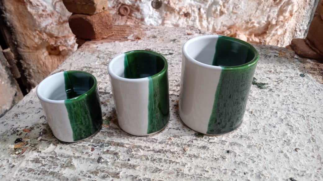 Add a touch of contemporary style to your daily routine with these sleek, minimalist ceramic tumblers. Each piece is handcrafted from high-quality ceramic (mud) and features a bold, half-dipped color-block design, combining a rich, high-gloss emerald green with a crisp, clean white. The versatile, handle-less shape makes these beakers perfect for a multitude of uses: enjoy them as a chic cup for water or juice, use them to organize pens on your desk, hold makeup brushes on a vanity, or even as a stylish little planter for succulents. Available in a range of sizes, they can be collected to create a stunning, coordinated set.